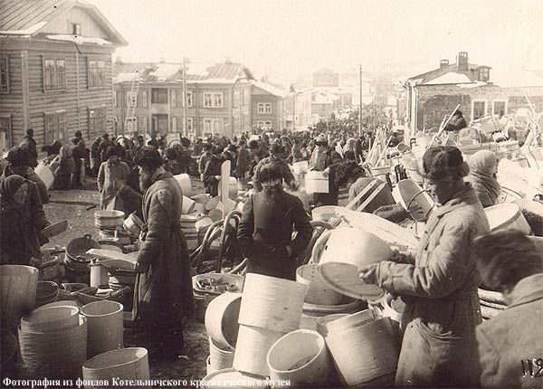 Уклон на торговлю и получение хороших доходов от услуг и постоя приезжающим на Алексеевскую ярмарку не формировали у котельничан мотивов заниматься производительным трудом. По воспоминаниям современников в 60-ые годы 19 века в дни ярмарки приезжающих было до 12 тысяч человек. “За одну комнату в какие-нибудь две три недели” постоялец платил 10 и 15 рублей, что позволяло горожанам получать доходы в среднем до 50 рублей, а имеющим большие дома от 100 до 250 рублей [77]. Необходимые изделия ремесленников котельничане покупали на ярмарке и поэтому, наверное среди них, не было “порядочных мебельных мастеров”. Клали печи, лудили медную посуду, выполняли плотницкие работы приезжающие в город орловские мещане [78].