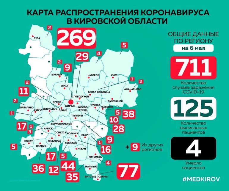 У ближайших соседей количество заболевших: в Яранском районе - 36, в Советском районе - 12, в Арбажском - 3, Орловском - 2, Оричевском - 11.