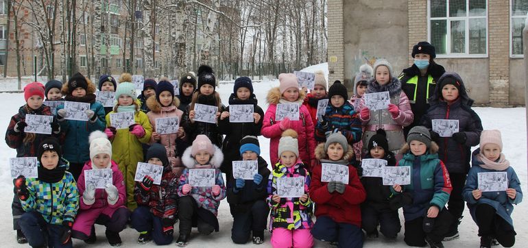 Автоинспекторы объяснили ребятам, что на скользкой дороге тормозной путь автомобиля значительно увеличивается, также возникает вероятность заноса машины, поэтому ребенку, переходя дорогу, необходимо оценить обстановку.