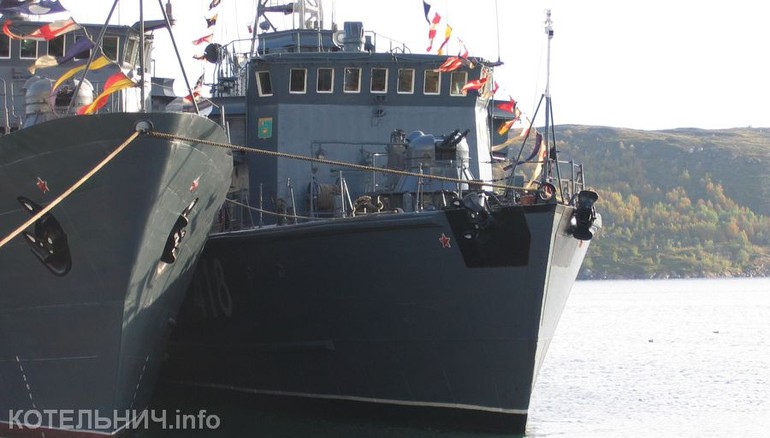 В Североморске на рейд встанут атомная подводная лодка К-119, подводные лодки Б-808, Б-414, малые противолодочные корабли «Юнга» и «Рассвет», базовые тральщики «Полярный» и «Котельнич», а также другие корабли и суда.