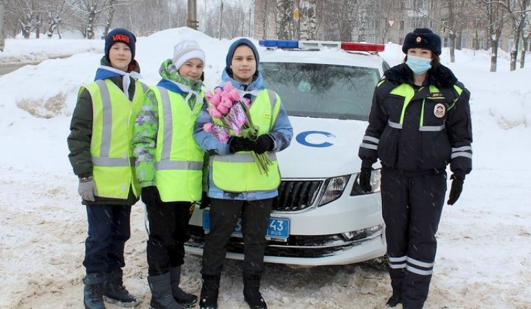 В преддверии Международного женского дня 8 марта на дороги Котельнича вышел «Цветочный патруль». Инспекторы дорожно-патрульной службы и помощники Госавтоинспекции из школы №2 встречали автоледи на дороге с открытками и цветами. Поздравляя женщин-водителей, автоинспекторы желали им радости и безаварийной езды, а школьники красоты и весеннего настроения.