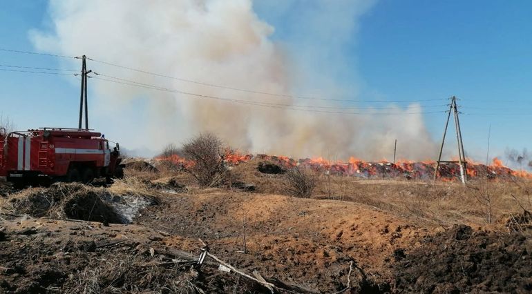 Очередной пожар случился сегодня возле деревень Караул и Веснины. По состоянию на 13.00 горят гектары территории.