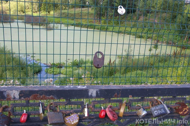 Совсем недавно первые два замочка появились на новом ограждении будущего Динопарка. Так что теперь влюбленным можно не беспокоиться, куда «пристроить» символ своей вечной любви — забор большой, места хватит всем. Жаль только, что о внешнем виде фигурной решетки моста и ограждения молодожены, видимо, не задумываются.