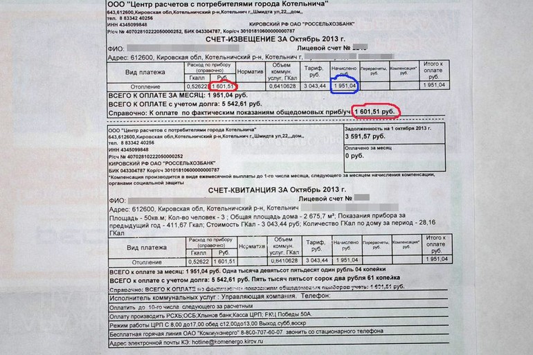 Кстати, последний раз «странные» платежки с «минусами» и долгами приходили котельничанам в мае.