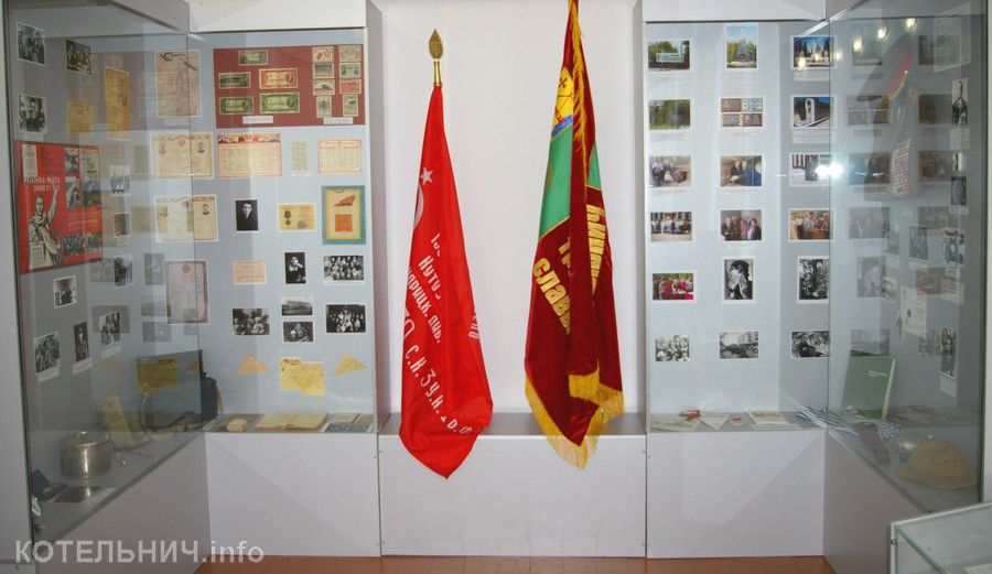 Основная часть экспозиции посвящена подвигам наших земляков в годы Великой Отечественной войны. Фотографии, оружие и личные вещи, награды – свидетельства боевой славы котельничан. Экспозиция знакомит с участниками крупных сражений и земляками - Героями Советского Союза, разведчиками и летчиками, с эвакуированными в наш город детьми и с теми, кому выпало пережить фашистскую неволю. Одним из главных экспонатов экспозиции является подлинный предмет времен Великой Отечественной войны – уличный громкоговоритель. Он был установлен на здании городского Дома культуры.