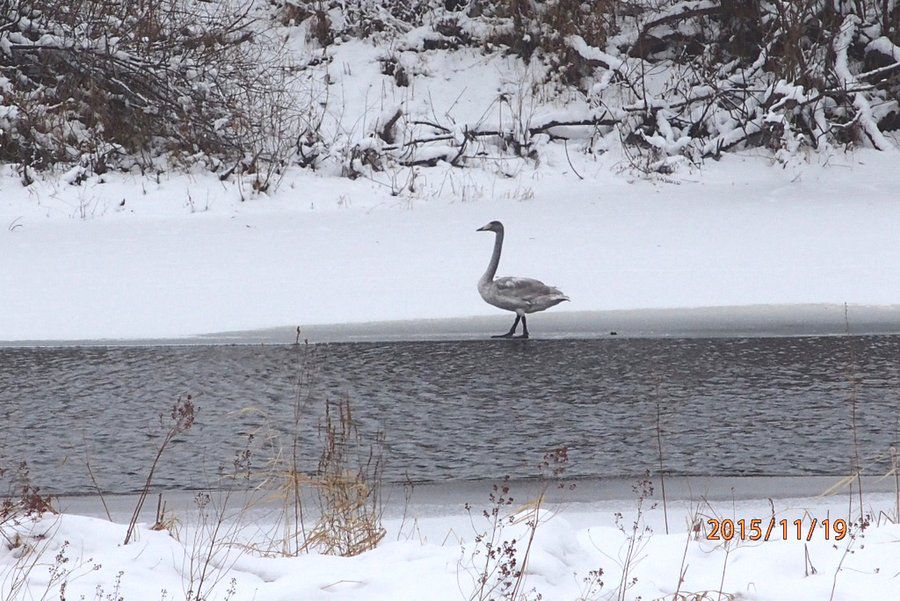 Двадцать четвертого ноября птицы перелетели в п. Криуша на большую промоину (длиной около 0,5 км), которая обычно не замерзает зимой. В охранной зоне заповедника на р. Прость зимой всегда много незамерзающих участков. Поскольку птицы хорошо летают, то могут найти себе подходящие места для зимовки и кормёжки.
