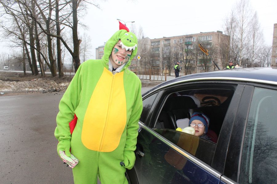 Школьники из отряда ЮИД «Дорожный дозор» пятой школы вместе с главным персонажем акции Дино обратились с призывом к родителям-водителям: «Уважаемые родители-водители, позаботьтесь о маленьких пассажирах. Дети – самые незащищенные участники дорожного движения. Их здоровье и благополучие зависит только от вас. Помните, детское кресло – самый надёжный способ защитить ваших детей. Пристегните ребенка, сохраните свое будущее!».