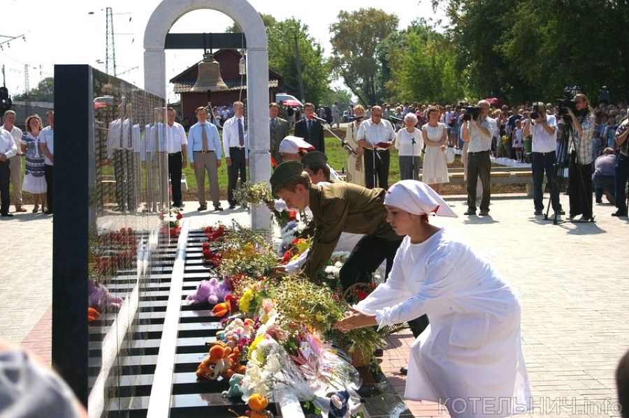 В нашем городе захоронено около трех тысяч жителей различных городов бывшего СССР. Эти люди умерли в эшелонах, в которых их везли в 1941-1944 годах по северной железнодорожной ветке на Урал. Семнадцатого июля 1941 года с первого эшелона, прибывшего в Котельнич из блокадного Ленинграда, сняли умерших, поэтому именно в этот день было решено открыть памятник.
