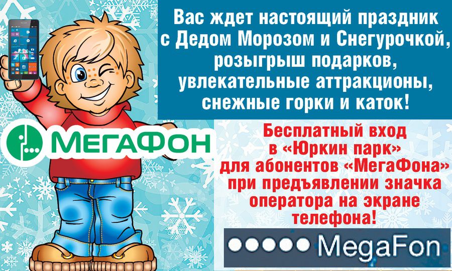 Бесплатный вход в «Юркин Парк» для абонентов «Мегафон» при предъявлении значка оператора на экране телефона.