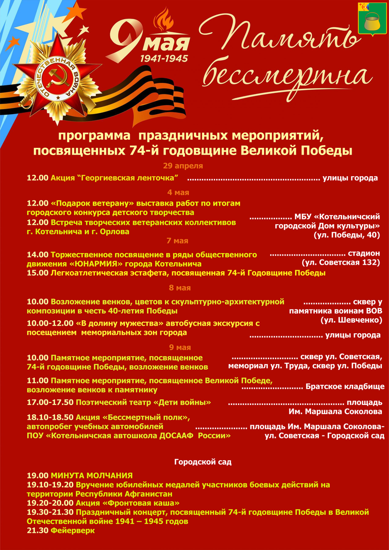 Программа праздничных мероприятий в День Победы.