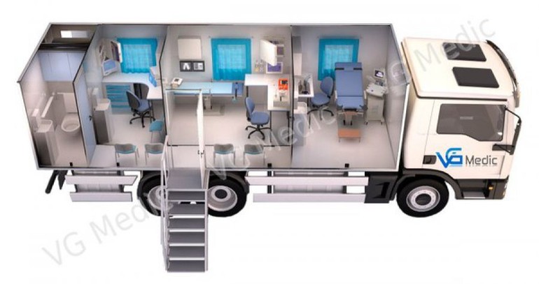 Медицинские вездеходы оснащены следующим лабораторным оборудованием: биохимический анализатор, глюкометр, гематологический анализатор, портативный аппарат УЗИ, электрокардиограф, дерматоскоп, медтехника для врачей-неврологов, офтальмологов и гинекологов.