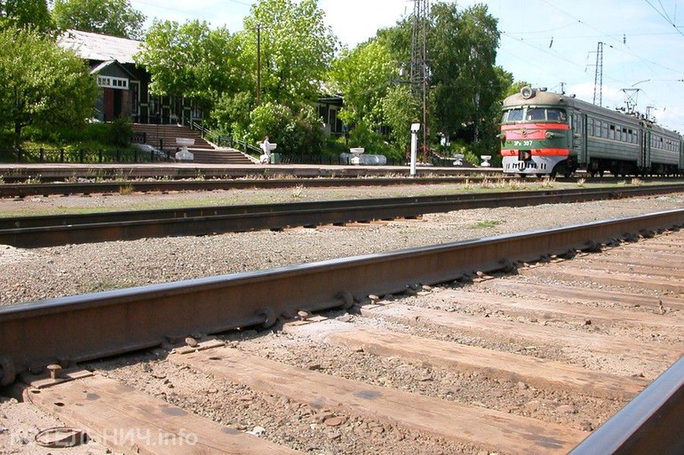 В продолжение "вокзальной" темы. Вот он - наш старый добрый вокзал. И наша прекрасная зеленая электричка, у которой еще восемь, а то и десять вагонов (представляете, было и такое!!!) и на которую еще никакая "ВВПК" не "посягает".
