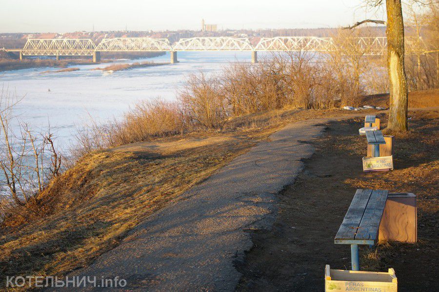 Впервые за многие годы весной, на высоком берегу Вятки, около Верхней площади, ЧИСТОТА! Нет пустых бутылок, пачек из под сигарет и всевозможных пакетов. Около скамеечек стоят урны и ящики для мусора. Более того, по «следам» метлы на земле видно, что там регулярно прибираются.