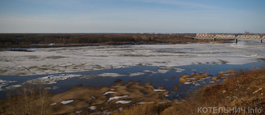 Вятка вскрылась при уровне воды 102 сантиметра от нуля поста наблюдения. За прошедшие сутки прибыль воды составила всего 8 сантиметров.
