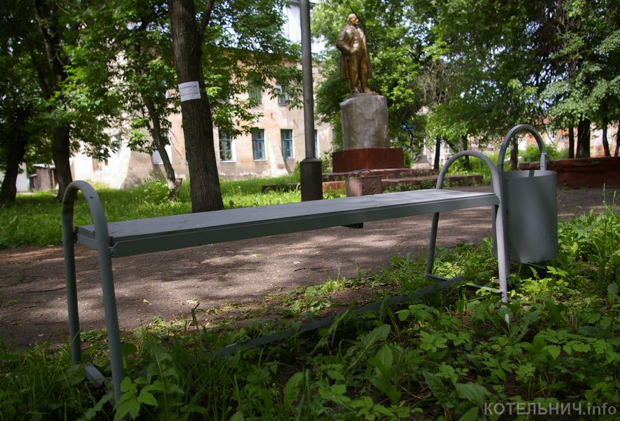 Около Ленина появились новые скамейки и урны.