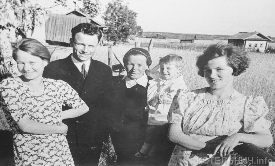 Колхоз "Молот". 1939 год. Семья колхозницы Марии Фадеевны Бороздиной. Мария Фадеевна с внучкой Светланой, сын Аркадий Корнилович окончил Горьковский сельхозинститут, дочь Зоя - ученица шестого класса, дочь Юлия окончила Пермский пединститут.