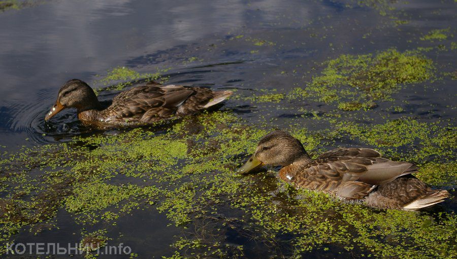 В Динопарке на речке Балакиревице нынче обитает просто огромное количество уток. Они совсем не боятся людей и подплывают очень близко.