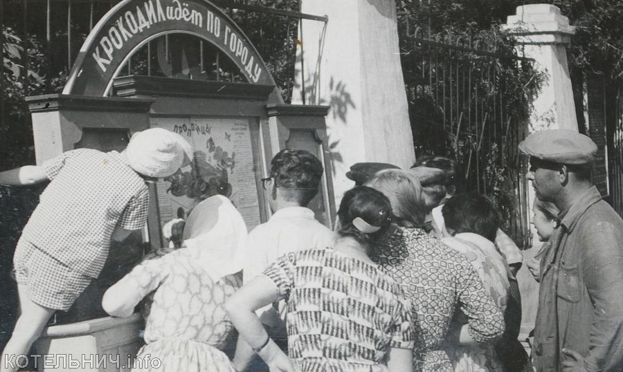 Оказывается когда-то в Котельниче выпускалась "юмористическая стенгазета". Она вывешивалась в центре города, около кинотеатра. В изображенной на фотографии, видимо, клеймятся позором любители "зеленого змия".