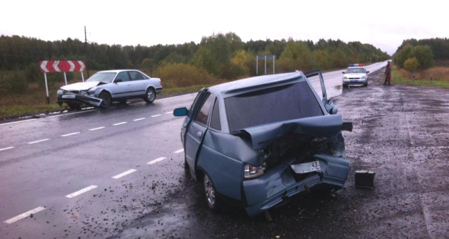 13 сентября, в 17 часов 05 минут, на 42 километре автодороги Котельнич – Даровской (поворот на Спасское), по предварительным данным, 40-летний водитель автомобиля «Ауди А100» (мужчина, безработный, употребил спиртные напитки после ДТП) не правильно выбрал дистанцию до впереди идущего автомобиля ВАЗ-21102, под управлением 26-летней девушки, и совершил с ним столкновение. В результате происшествия 22-летняя девушка-пассажир автомобиля ВАЗ-21102 получила травмы (не госпитализирована).