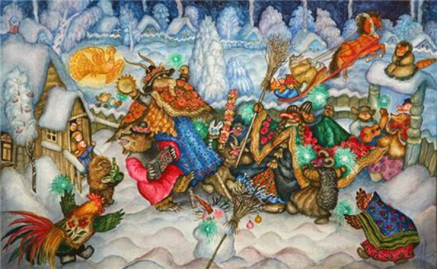 На Руси молодежь в святочные вечера собиралась вместе, переодевалась в зверей или мифологических персонажей вроде Иванушки-дурачка и шла колядовать.