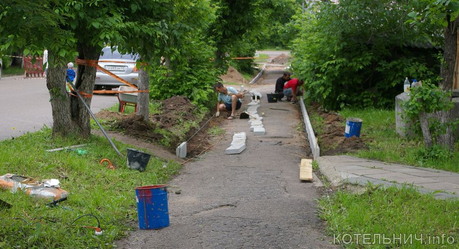 На улице Луначарского начались работы по укладке брусчатки на пешеходные дорожки.